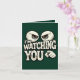 Send a message they won't forget with this hilarious "I'm Watching You" greeting card. Featuring suspicious retro eyes and a pointing finger on a deep forest green background, it's the perfect way to say "Thinking of You" with a side of sarcasm. Great for birthdays, office pranks, or just to keep your friends on their toes. Blank inside for your personal (and mysterious) message!