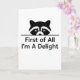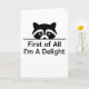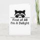 Funny Raccoon card First of All I’m A Delight, Minimalist Sarcastic Animal Graphic card Gift