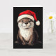 Cartão Funny Otter Santa Hat Xmas Otter Lovers Christmas