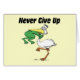 Design engraçado com uma nota positiva. Nunca desista tem um pelicano engolindo um sapo que tem as mãos em volta do pescoço do pelicano. Presente e inspiração engraçados para amigos e família.