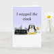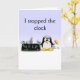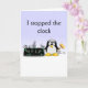 Cute Mother's Day Card with funny penguin smashing a clock on the front with text that says I stopped the clock. Inside left says Now it's Mother's Day every day. Inside right says Happy Mother's Day Mom! I love You. All text can be replaced with your own message.