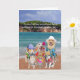 Um cartão humorístico com todos vestidos tropicais. Você pode personalizar o texto, fontes, tamanhos de fontes e cores. A foto de fundo da praia é obrigado para fotos publicddominais.