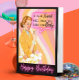 Featuring a fabulous 1950s glamour girl in full pin-up perfection, this cheeky card delivers vintage vibes with a modern twist.