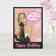 Featuring a fabulous 1950s glamour girl in full pin-up perfection, this cheeky card delivers vintage vibes with a modern twist.