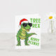 Cartão Funny Tree Rex Christmas Dinosaur Santa Hat Lights