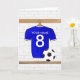 Um único design esportivo com uma camisa de futebol azul e branca com uma bola de futebol pendurada num vestiário que é totalmente personalizável com o seu próprio nome e número. Um presente personalizado ideal para qualquer jogador de futebol ou fã de futebol. Disponível em várias cores do time de futebol. Podemos fazer este design em qualquer combinação de cor de camisa da equipe, apenas entre em contato conosco através da loja de presentes bonanza antes de comprar com o seu pedido. série de promocionais: sgb01