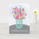 Send your Future Daughter-in-Law blessings not just on her birthday but throughout the year. Pretty watercolor-looking flowers in a mason jar vase are set on a striped tablecloth. Perfect religious birthday card for your Future Daughter-in-Law.