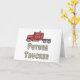 O design do Futuro Caminhoneiro apresenta um caminhão desenhado à mão com o motorista e detalhes acima do grande gráfico que diz "Futuro Caminhoneiro". Uma imagem divertida para entusiastas de caminhada.