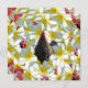 Picture é um galo com flores de frangipani com galinhas espreitando por elas