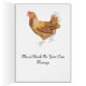 Este cartão editável mostra um galo gigante correndo em direção a uma galinha em um campo de Primavera floral. A saudação frontal e o texto dentro são vazio para você adicionar seu próprio texto.