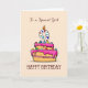 Cartão Garota 9º aniversário, 9º no Bolo Rosa Doce