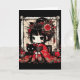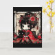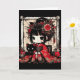 Cartão Garota Chibi Kimono Gato Preto Flores Arte Japones