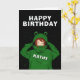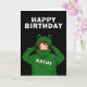 Garota Bonita com Cartão de Aniversário de Desenho Sapo Verde. Um belo desenho de uma garota vestindo um sangrento sapo verde. Design de diversão para uma garota. Adicione seu nome e dentro de texto.