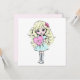 Possui uma garota ilustrada e fofa em cores pastéis, segurando um coração rosa. Personalize com um nome na frente, uma mensagem e o nome do remetente na parte traseira.