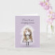 Garota bonitinha com tênis, véu nojento, buquê margarida, cabelo, colar de pérolas e vestir-se em fundo roxo para a futura noiva. Todo texto pode ser editado. A cor de fundo pode ser alterada.
