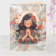 Cartão Garota Jovem Personalizada Rezando Saudação Laranj