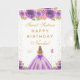 Este cartão de aniversário de sweet sixteen elegante e glamoroso pode ser personalizado com um nome ou título, como filha, neta, sobrinha, amiga, etc. O design apresenta uma bela princesa com cabelos loiros e pele clara em um vestido de baile roxo. O texto combina caligrafia manuscrita e fontes modernas sem serifa para um visual sofisticado e elegante. Os arranjos florais, borboletas e confetes dourados criam a combinação perfeita de rústico e chique.