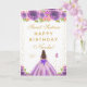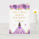Este cartão de aniversário de sweet sixteen elegante e glamoroso pode ser personalizado com um nome ou título, como filha, neta, sobrinha, amiga, etc. O design apresenta uma bela princesa com cabelos castanhos e pele clara em um vestido de baile roxo. O texto combina caligrafia manuscrita e fontes modernas sem serifa para um visual sofisticado e elegante. Os arranjos florais, borboletas e confetes dourados criam a combinação perfeita de rústico e chique.