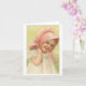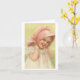 Uma jovem vitoriana num capô cor-de-rosa e vestido branco.