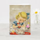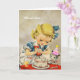 Cartão Gata Pequena Fazendo Bolo Feliz Aniversário