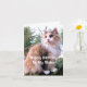 Este cartão de aniversário para sua irmã que ama gatos apresenta um lindo gato calico de pelo longo sentado em um toco de árvore no outono. As cores do gato são butterscotch, cinza e branco. Na frente, o texto diz: "Feliz Aniversário à Minha Irmã".