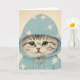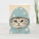 Cartão Gatinho Adorável num Morcego Azul Pastel