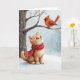 Cartão Gatinho de natal Ginger assistindo um cardeal