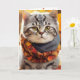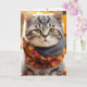 Um gato de mesa bonito com um cachecol de outono para o aniversário. O texto pode ser alterado.