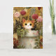 Adorável gatinho de laranja emergente de um pote de cerâmica em meio a folhas luxuosas e flores coloridas, criando um cenário artístico e caprichoso.
