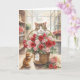 Cartão Gato arranjando flores rosas cesta Dia dos Namorad
