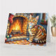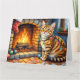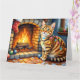Cartão Gato Bengal à Beira da Lareira com Luzes de Natal