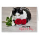 Cartão Gato bonito com a rosa vermelha