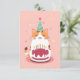 Cartão Gato bonito com bolo de aniversário