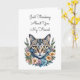 Cartão Gato Bonito em Flores de Aquarela Pensando em Você