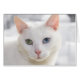 Cartão gato branco de olhos estranhos se aproxima da face