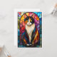Cartão de saudação encantador no estilo de vitral. O dourado é impresso (dourado falso), não é folha ou purpurina. O texto pode ser alterado ou excluído. Imagem gerada por IA por IveyCottage.