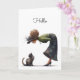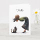 Um gato fofo e uma senhora compartilham um "Olá" neste cartão branco. Todo o texto pode ser alterado para sua saudação preferida. Imagem assistida por IA adquirida com uso comercial. Trabalho de arte: RedHeronLighthouse