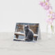 Doce gatinho cinza aproveitando a neve que cai. Em branco por dentro para sua mensagem pessoal. Perfeito para desejos de aniversário, feriados, cartões de agradecimento, etc.