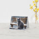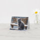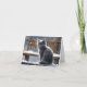 Cartão Gato Cinza Fofo no Banco de Madeira na Neve Branco