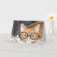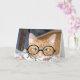 Gato de gato malhado alaranjado com mentiras dos vidros na cama com seus livros no fundo que espera para ser cartão lido da foto. Registra o png comprado do pintado em minha alma para o uso. Grande cartão para amantes do gato, professores, bibliotecários.