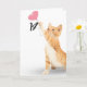 Dourado gato com balão de coração cor-de-rosa para 14 de aniversário em fundo branco. A cor de fundo pode ser alterada.