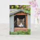 Cartão Gato de Aniversário Escondido na Casa dos Cachorro