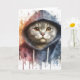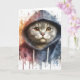 Cartão Gato de Aquarela em Capuz Azul Arte de Salpico em