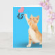 Dourado gato com balão de coração cor-de-rosa para o 45.o aniversário em fundo de turquesa. A cor de fundo pode ser alterada.