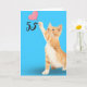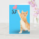 Dourado gato com balão de coração cor-de-rosa para o 45.º aniversário em fundo aqua. A cor de fundo pode ser alterada.