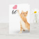 Dourado gato com balão de coração cor-de-rosa para 66º aniversário em fundo branco. A cor de fundo pode ser alterada.
