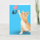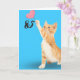 Dourado gato com balão de coração cor-de-rosa para o 85.o aniversário em fundo de turquesa. A cor de fundo pode ser alterada.