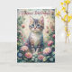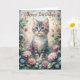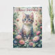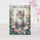 Um gatinho de olhos azuis no jardim das flores. Adequado para um cartão de aniversário para qualquer um. Sinta-se livre para alterar o texto