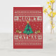 Suéter de Natal feio com um gato plantado numa árvore de Natal.