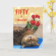 Gatinho festivo com um grande buquê de rosas, pronto para celebrar um aniversário especial. Você pode personalizar as mensagens, mudar o ano para 40, 60, 70 e além. Faça o seu próprio cartão e divirta-se! Fotos ©Christine Greenspan. Gráficos licenciados.
